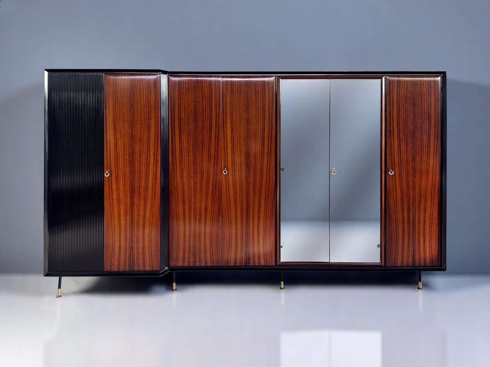 Wonderfull are all the ebonized details as the superb vertical slatted details, even called ‘grissinatura’, or the ebonized sculptural frame that defines the entire perimeter of the cabinet.
